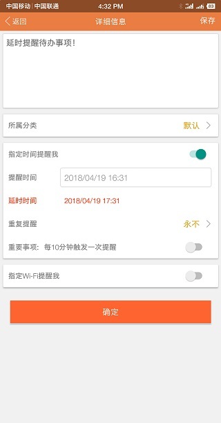 3、定时提醒:支持公历(阳历)、农历(阴历)定时提醒,更符合中国人的节日习惯,按天、周、月、季度、年和自定义时间定时提醒的便签时间管理工具。