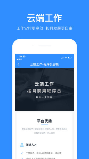 程序员客栈优势1、程序员招聘:选择职位,一键发起沟通。