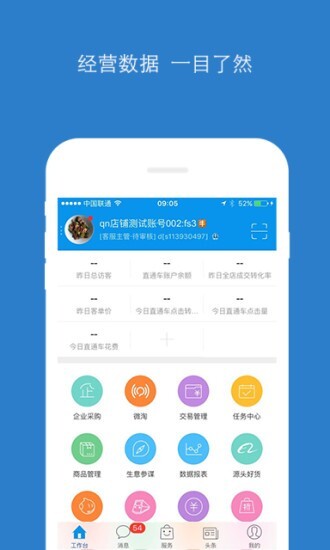 千牛卖家工作台手机版功能1、工作台:提供店铺关键数据、任务、交易、商品等常见操作门户。