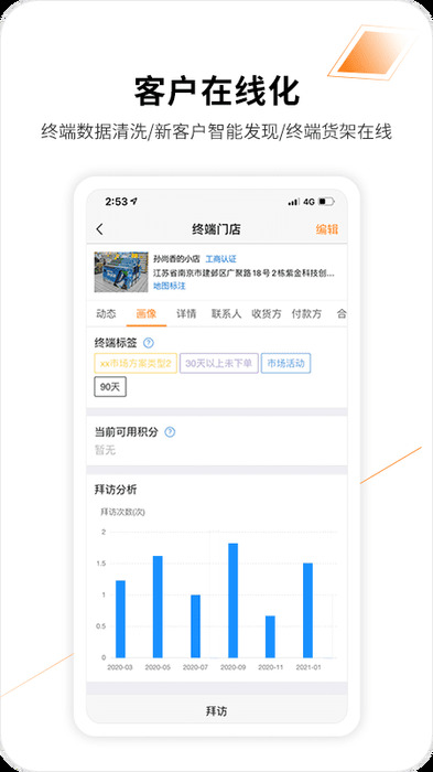 2、客户拜访:可关联客户与位置的手机拜访,客户情况及时总结,拜访记录随时可查。