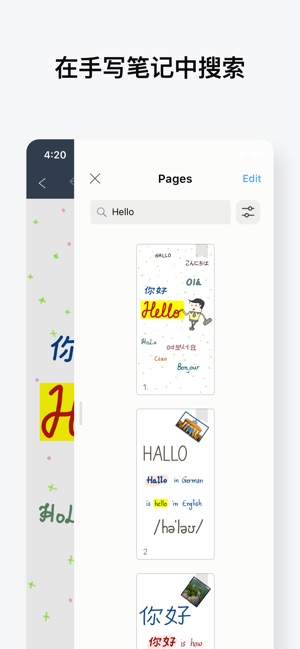 Noteshelf功能1、触摸笔,支持各种手写笔记录各种信息,体验纸笔写作的感觉。
