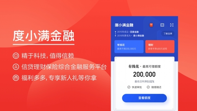度小满金融app官网下载亮点1、安全放心:大平台实力保证、风控严密。