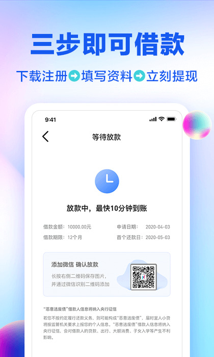 2、速度够快:手机申请3步搞定,5分钟申请,10分钟审核。