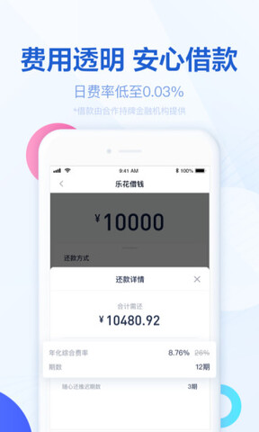 分期乐下载app亮点1、循环额度:极速刷脸开户,最高5万额度循环使用。