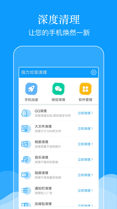 强力垃圾清理APP内容1、一键清理垃圾,还有各种深度清理功能,让您轻松清理手机。