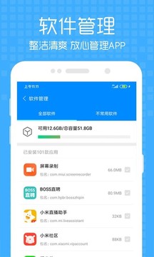 2、帮助手机中的所有软件管理,筛选出不常用的其他软件,让用户根据自己的需要选择是否清洗。
