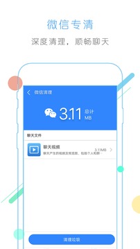 一键垃圾清理APP内容1、微信缓存清理、朋友圈缓存清理、视频、小程序等,空间更大。