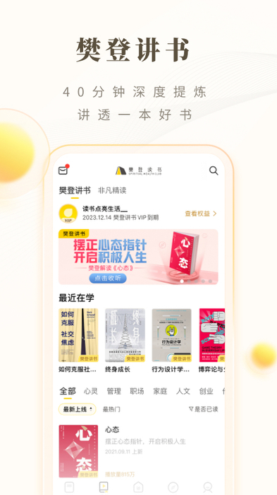 樊登读书会官网app是一款很专业的读书软件,在这里软件里面为大家准备了超多的优质好书,可以帮你养成良好的阅读习惯,喜欢阅读的小伙伴快来下载樊登读书会官网app试试吧。