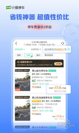 小强停车业务已覆盖59个机场、40+高铁站、地铁站,40+医院,10万+车位,目前已陆续与中国国航、中国人保、广发银行、携程、南方航空、同程、飞猪、众安保险等达成合作关系,成为这些一线品牌的停车服务提供商。截止至2019年12月,小强已累计服务商旅人士超870万,累计为用户节省停车费达9.2亿元。 小强核心价值安全:百万停车保险, 监控覆盖,不交钥匙快捷:平均8分钟送达机场,24小时免费接驳省钱:省80%停车费 【具体功能】 1. 为车主提供机场、高铁站的停车服务,包含车位查询、预订、支付、导航、接送服务等; 2. 可根据成交量、价格、距离、评价等多维度选择停车场,货比三家; 3. 离线地图,一键导航,方便快捷,节省流量; 4. 同时支持线上、线下两种支付方式; 5. 软件中定位功能,可能稍微耗电量耗电池,敬请注意。 联系我们全国服务热线:0571-88051752 地址: 浙江省杭州市萧山区萧山经济技术开发区启迪路198号B1座-703室邮箱: xqpark@xqpark.cn