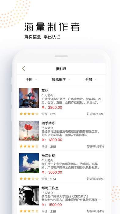 觅拍APP测评1、没有中间商赚取差价,用户可以在网上找到高质量的制作人。