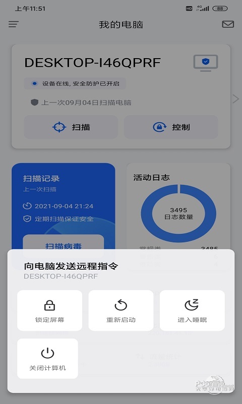 奇安信安全防护是一款连接PC和移动端的软件,可以轻松、快捷且安全的向电脑发送远程指令,从而更加方便的在云端管理自己的设备,实时查看自己的电脑状态。通过使用奇安信安全防护,可以随时随地的远程自己的设备,支持远程锁定屏幕、重新启动、进入睡眠、关闭计算机等,随时随地的控制自己的设备,让操作更加便捷和安全。