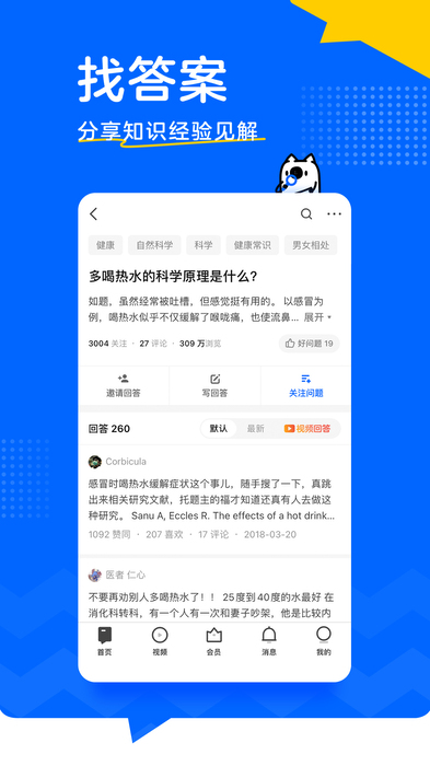 知乎app是一款非常好用的知识问答和了解资讯的社区软件,在这个平台上有各种各样的分区,比如数字、影视、时尚、体育、校园、亲子、动画等,只要你感兴趣,你就可以在这里找到一个新世界。你可以选择加入这个圈子,与圈内同兴趣的伙伴进行畅聊,你可以在圈子里发布动态,支持上传图片、视频描述。有需要的小伙伴可以来这里下载知乎搜索自己问题的答案哦,你可以在这里提出自己的疑问,会有很多的人来帮你解答,还有很多知识等着你来了解哦。