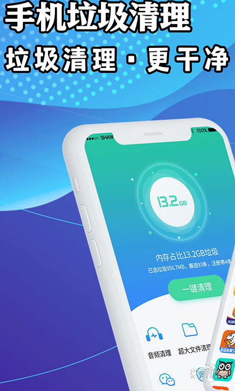 高效的手机垃圾清理软件,拥有音频清理,超大文件清理,超大视频清理,压缩包清理,微信清理,淘宝清理,抖音清理,手机降温等清理功能,可快速清理手机中的垃圾文件.还有应用锁,模拟来电等功能