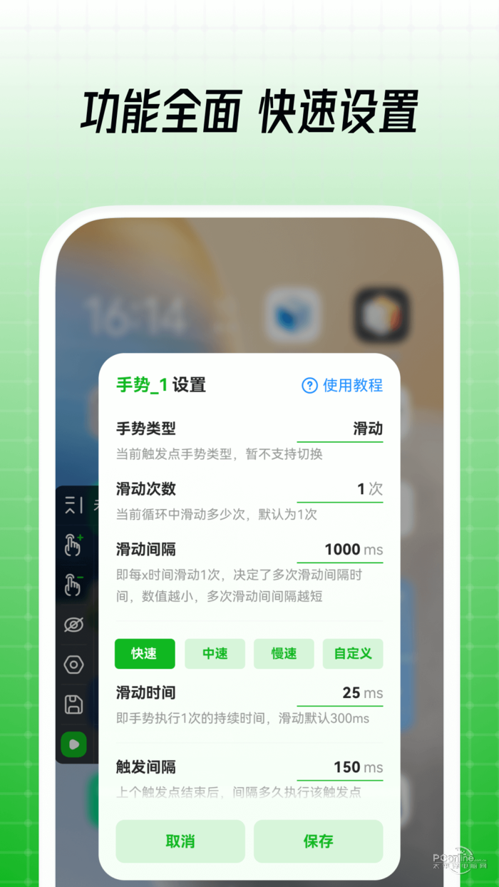 「快速设置」智能参数推荐,一键设置手势相关属性