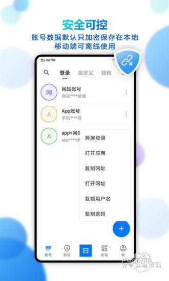 公众号:denglu-1 QQ群:801120590 官网: 登录易核心采用RSA+AES256加密技术,可加密管理网站账号和手机App账号。【自动注册及扫码保存账号】登录易软件可以一键生成随机账号及超强密码,解决相同密码及弱密码的安全隐患问题已注册账号,可进行登录扫码存储,账号登录后插件弹出二维码,登录易扫码即可存储账号至软件进行加密管理【跨屏、推送、扫码均可一键登录PC网站】登录易app的部分功能(如注册、登录、改密等功能)需要搭配登录易浏览器插件使用配合插件可实现三种登录交互模式: 1、可在登录易软件点击跨屏登录,可以直接将账号密码在电脑端自动填充输入并登录账号 2、在电脑端点击推送登录或扫码登录,可以在登录易手机App授权自动填充登录【手机App软件自动填充】登录易app具备自动填充及保存手机APP登录的账号密码的能力(Android 8以上系统),在自动填充账号信息时可以设置授权填充【账号分享】有需要朋友或家人帮忙登录账号的时候,您可以点击【一键分享】即可方便地将账号直接授权给他人进行登录【多重加密备份】登录易软件为您提供【本地备份】及【云端备份】功能,备份时均采用加密技术。此外登录易还支持其他各类云盘备份