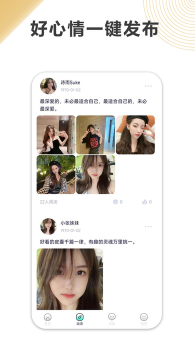 3、无处释放的表达欲就在这里尽情展示,自由自在分享生活瞬间,快来认识更多志同道合的好友。