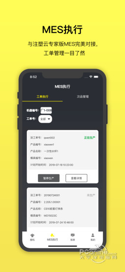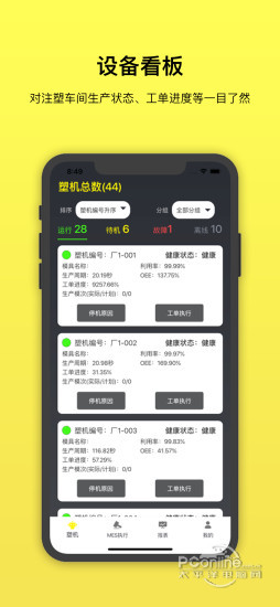“注塑云2.0“App,为注塑工厂提供多元化服务,通过对塑机生产状态、稼动率、设备利用率的监控与分析,实现设备在线智能管控。帮助注塑工厂更好地了解塑机的使用情况,提高塑机的生产效率和利用率。同时通过后台大数据的分析算法预测机器的未来,对设备进行更好的维护保养,延长设备的使用寿命,创造出更大的价值。