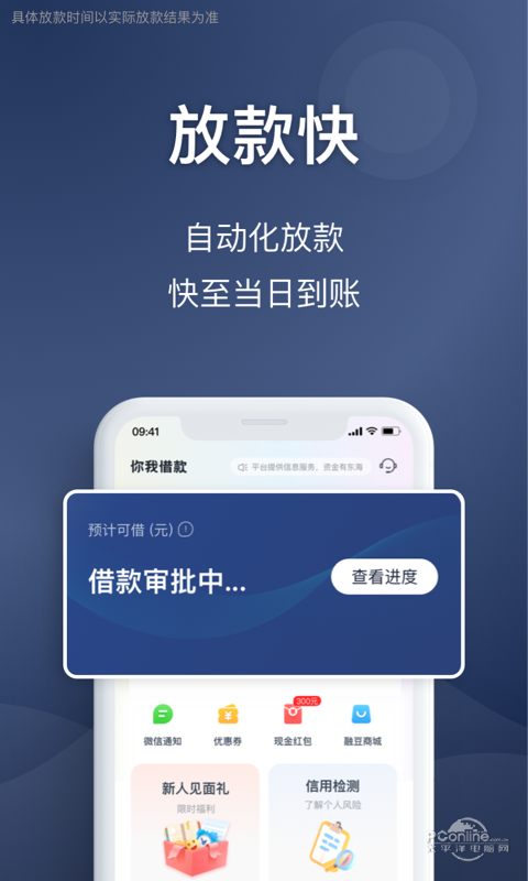 *全线上审核,确认借款审核通过后快速到账