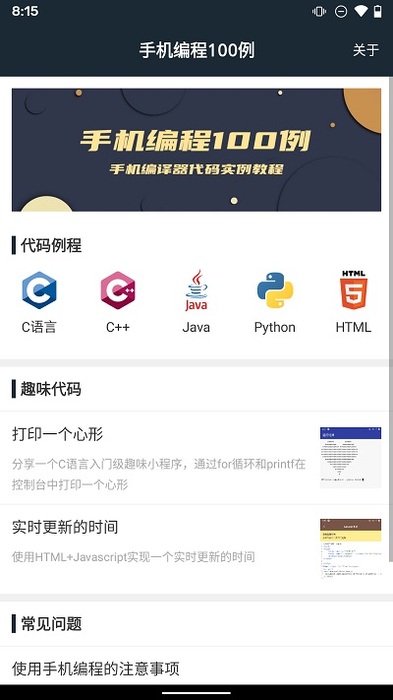 手机编程100例功能1.【海量教程】提供海量编程参考教程。