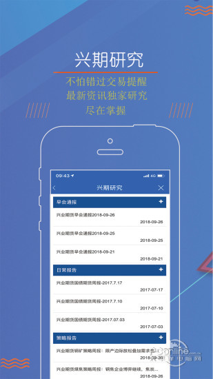 兴业期货定制开发的全新官方APP,集期货开户、期货期权交易、行业金融资讯等为一体的全方位智能手机APP!内置监控中心开户功能,期货开户随心所欲。随时随地查看新鲜行情,期货交易随时施宜。灵活多变的交易快捷键,期货交易随机应变。及时推送专业研报咨询,期货交易随行就市。兴业期货,助你期货交易“指”点江山。