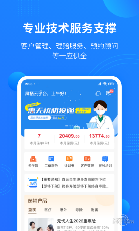 凤栖云平台—以卓越科技能力助力保险中介客户数字化转型,为保险中介客户提供领先的售前、售中、售后数字化解决方案,以及可靠的信息化及风控管理服务.