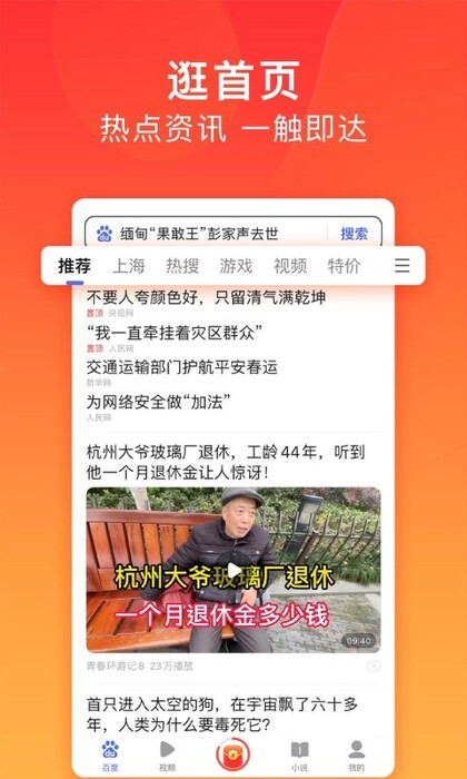 百度极速版下载优势1、小说视频动画:汇集全网热门小说、优质视频、动画新粉丝,个性化推荐你喜欢的内容,免费体验。