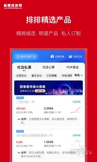 买私募基金,就上私募排排网。私募排排网官网地址:www.simuwang.com 私募排排网,是国内专业的私募基金信息提供商、私募基金评级及私募基金销售服务商。旨在推动国内私募基金业健康、规范发展,促进业界交流与合作。 -排排网APP特点- ●【理财频道】国内优秀产品经理甄选优质私募,打造精品理财频道,为您推介当前热销基金产品; ●【私募排名】国内最全面的对冲基金数据库,覆盖全国14万多只私募基金,2万多家私募基金公司以及近万位基金经理的详细信息;; ●【路演直播】每日邀请私募投资大咖现场直播,全面剖析投资策略,想要了解私募走势,实时关注路演直播就没错; ●【行业资讯】每天排排网小编准时给您带来原创行业资讯,实时分享财经热点快讯,打造独家专访频道,定期撰写机构研究报告,给你的投资保驾护航; -如何找我们- 以下联系方式总有一种是你喜欢的:微博关注@私募排排网微信添加好友:simuppw 关注我们的公众号:排排网官微欢迎登陆官网了解更多信息