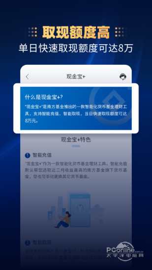 南方基金是国内首批规范的基金管理公司,超过1.69亿客户的共同选择,累计分红超过1501亿,多次获得权威奖项“金牛基金管理公司奖”。托付南方,成就梦想! l 现金宝+,智能优选货币基金,最高8万快取额度,快捷简便; l 稳健理财专区,聚合低波动稳健产品,中短期闲钱好去处; l 司南投顾,全市场精选基金,量身定制投资方案,全程管理账户资产; l 投资资讯,投资锦囊、投研观点、新闻资讯全覆盖,有趣又有料。