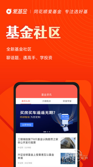 【买基金就上同花顺爱基金】 1、同花顺爱基金是互联网金融龙头股同花顺(300033)全资子公司,拥有证监会颁发的第三方基金销售牌照;民生银行全程监管 2、拥有20年金融信息服务,3亿证券基金投资者的选择; 3、用收益宝买基金无支付上限,申购费率0折起,基金赎回到收益宝投资周期快1-2天; 4、全场基金一折起,近百位投顾老师每日实盘互动。 5、产品齐全:公募、私募、专户、资管等多投资品种任你选择。【产品亮点】 1、收益宝:类钱包功能,每天都有收益,7×24小时随时取现; 2、理财宝:短期理财好帮手,7-60天期限任选,买卖0费用; 3、基金FM:投顾老师多维度分析研究基金,解答基金问题,小白也能成为投资达人!3个月净赚46.13%; 4、 支持货基-股基互转,购买更方便,费率更低,投资周期更短。 5、大数据选基:运用同花顺千亿数据,百位研究员建立的千余种模型,智能选基;【联系我们】 官方网站:// www.5ifund.com 微 信:同花顺爱基金 客服电话:952555 投诉建议:4008-773-772