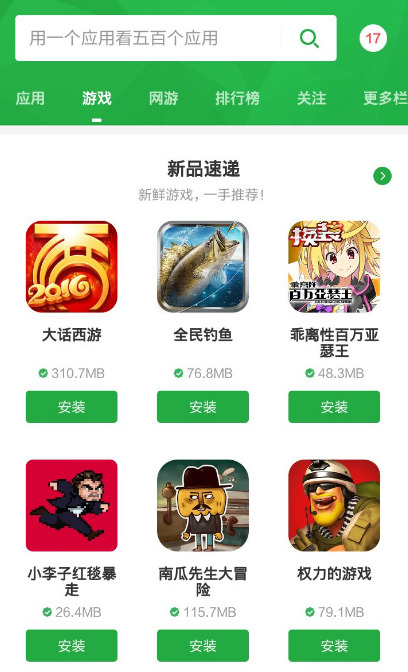 2.中国最完整、最方便的Android内容获取平台,提供200多万款应用/游戏,以及大量音乐、视频、图片、电子书免费下载。
