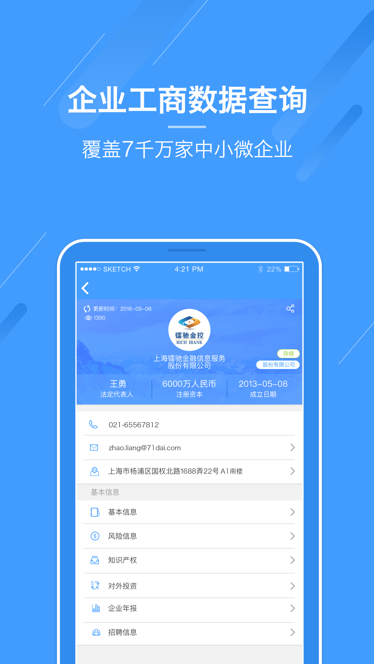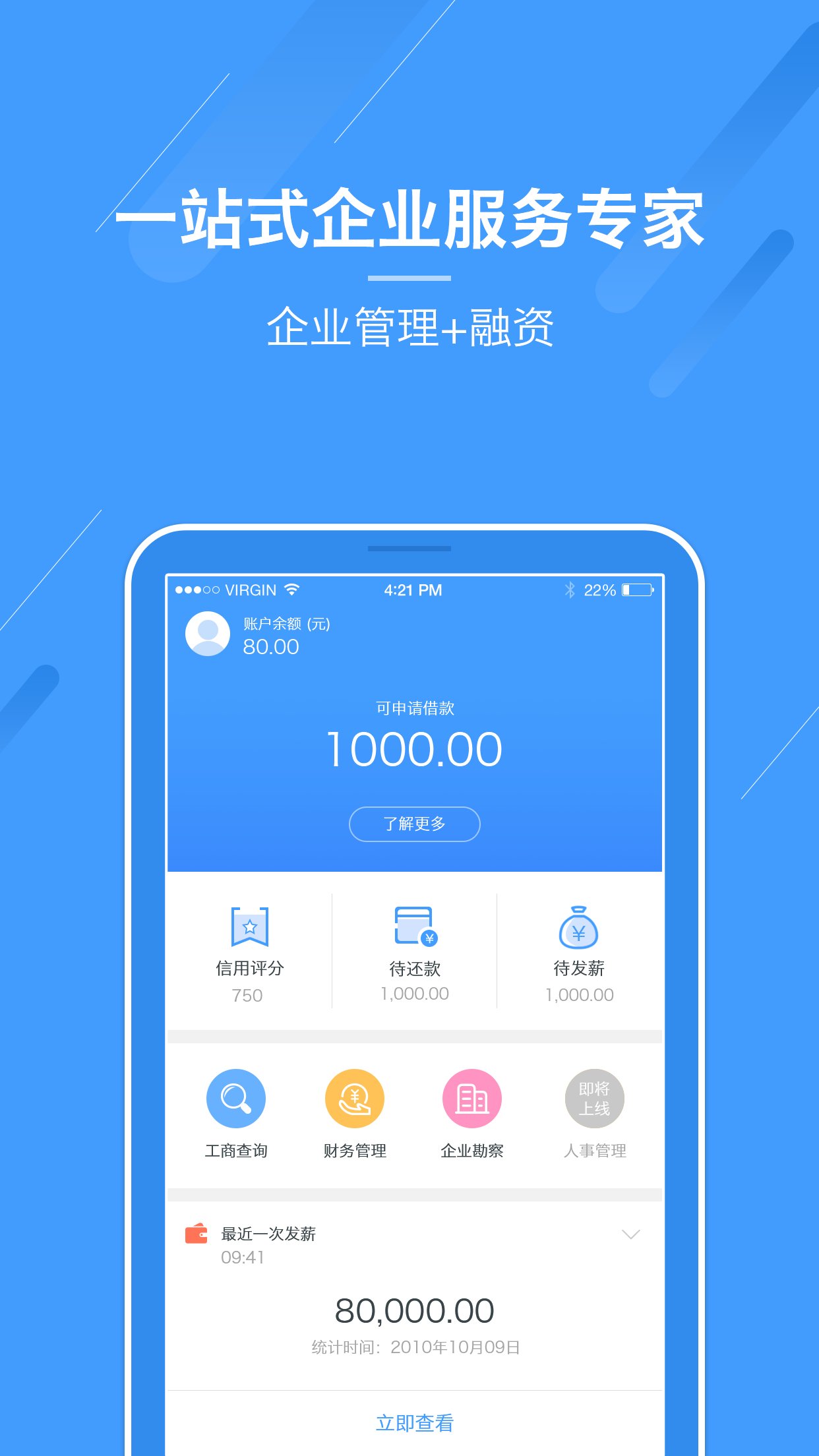“企易+” 是由镭驰金控集团旗下的上海镭驰金融信息服务股份有限公司(镭驰金融)推出的,列致力于服务中小微企业,精细化服务让中小微企业发展更便捷。包含企业融资,信用融资,企业管理,工商查询,财务管理