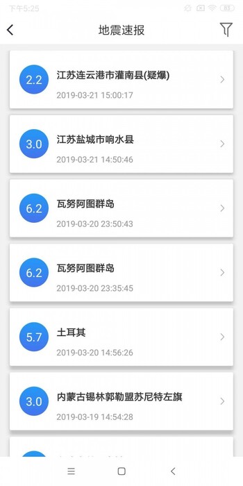 手机地震预警APP测评1.地震目录嵌入,地震遍布,地震谱等服务可以正常启动。