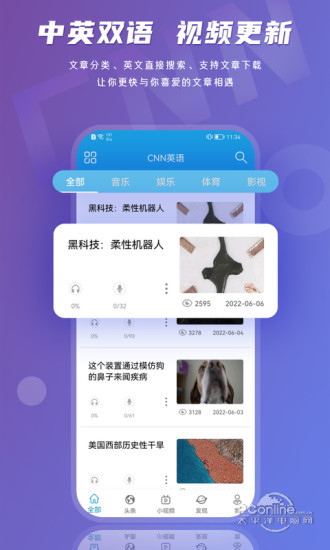 CNN英语视频,学英语听力口语---专业语音评测,正版内容,每日更新! 其特点: 1.CNN新闻十分钟是针对美国高中生的新闻学习素材,发音地道,标准语速,控制了高难度的内容 2.内容同时增加了鸡毛秀,肥伦秀,艾伦秀,囧叔脱口秀,英文歌曲mv等精彩的节目内容,学英语不再枯燥 3.将CNN听力分类,方便大家有针对性的学习。每天更新CNN新闻,保证新闻的实效性,并且带有中文翻译。 4.在线收看CNN新闻。同时可以下载感兴趣的新闻到本地,方便大家在无网络环境下学习英语。 5.内容针对不同英语程度的学习者提供全英文和中英文对照两种模式,并可以随意切换。 6.单词是英语学习的关键,对于不认识的单词,可以在听读的同时选词查看释义,可以听发音,并能添加到云生词本。 7.无网络环境同样可以将生词添加到生词本,当在有网络环境使用我们的应用时,将自动联网将释义等更新到生词本,方便用户随时随地添加单词。 CNN英语官方微信公众号:iyubacnn