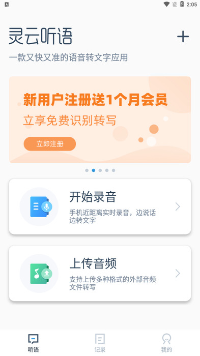 灵云听语APP优点1、手机专业免费录音,如在线音频转文字、语音识别、语音翻译、录音翻译、mp3转文字等。