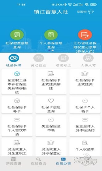 提供镇江市人力资源社会保障领域公共服务主要有以功能: “镇江智慧人社”移动端APP是镇江“智慧人社”六大服务渠道之一。集社保查询、人才招聘、劳动监察等功能为一体。 “镇江智慧人社”移动端APP用户分为普通用户和实名认证用户。普通用户只可以查询基础信息,如要查询详细信息需进行实名认证。 “实名认证”:主要分为线下柜面认证、线上认证和第三方认证。 “社保查询”:查询参保信息,包括参保时间、缴费明细等信息。 “人才招聘”:不定期的对外发布招聘信息,用户可根据自身需求查询。 “预约办事”: 用户可向社保中心预约办事项目,大大减少群众等候的时间