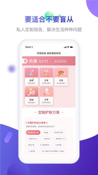 安我生活app是一款专为女性群体设计的医疗服务软件,通过基因方面检测用户的健康状况,提供科学健康的生活方式,您生成个人专属报告,并提供专家意见,您可以根据此调整自己的生活习惯,让自己过上健康的生活。值得放心的是,您所有的信息都受到保护,不会泄露。用户可以在这里找到生活技巧、育儿技巧、护理产品推荐、化妆教程、时尚服装等信息内容。每个人都可以根据自己的需要独立寻找文章信息,有目的地搜索,找到信息资源后可以在线详细阅读。此外,安我生活app还有三个领域,包括新女性健康管理、新妈妈科学育儿等多种检测产品,为新妈妈带来更科学的育儿方式。有兴趣的女性朋友快来下载体验。