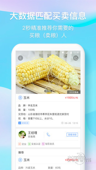 中时通粮油供求服务平台安卓版是由山东中时通电子商务有限公司推出的一款集供求信息发布、查询、行情资讯浏览等功能于一体的粮油买卖服务平台,开通有玉米、小麦、大豆、稻米、豆粕、食用油、花生粕、棉粕、菜粕、氨基酸、DDGS、添加剂、玉米副产品等14个频道。平台按照频道、区域、产地、规格等多维度定制化精准搜索功能为国内所有粮油供销企业提供一个公开、及时、精准的查询及展示平台,利用APP软件的及时、快捷、跨地域优势,打破粮油买卖的地域限制。其安全共赢的运作模式规避了粮油现货买卖的四大风险:资金安全交收风险、价格波动履约风险、货物质量争议风险、合同拖延执行风险。中时通粮油供求服务平台安卓版主要的功能有:发布/查询买卖信息、查询买卖合同明细以及资金明细、管理收货/发货、查询客户个人信息、浏览行情资讯。让行情永不离手,买卖随时掌控。