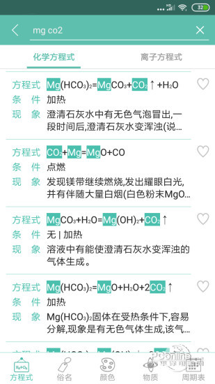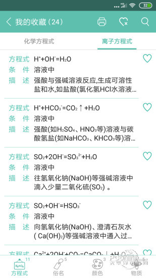 【软件简介】化学方程式软件是为从事化学专业的用户开发的一款化学工具软件。化学方程式首页包含元素周期表、物质、方程式等模块。各模块循序渐进,相辅相成,可以更快速、全面的帮助用户提高对化学知识的理解;同时化学方程式具有查询方便、数据齐全、知识面广、连贯性强、讲解深入等特点,一直以来深受广大用户的一致好评。 【软件特色】特色1:包含初高中教材中所有与方程式相关的知识点。特色2:包含各省市历年与方程式相关考题的解说。特色3:包含大学化学教材中的大部分基础表格数据。特色4:包含丰富的化学工艺。特色5:显示友好,查询方便。特色6:数据持续完善、错误率极低。 【作者寄语】化学是一门很神奇的学科,我们生活中的方方面面都离不开化学,化学的魅力之处在于她能够解释清楚我们所处环境中的各种现象与本质。希望本软件能够一直伴随大家的学习和工作生涯,本软件也将始终致力于“为大家提供便捷齐全的化学查询工具”为宗旨,持续丰富本软件的功能和数据。让我们携起手来,一起探索、共同进步! 【联系方式】客服微信:benhs2017 客服邮箱:feedback@benhuisen.com