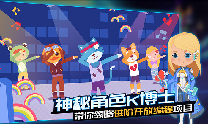 3、循序渐进的学习功能:移动、攻击、跳跃;学习活动、画板、逻辑、数字等编程知识和技能。