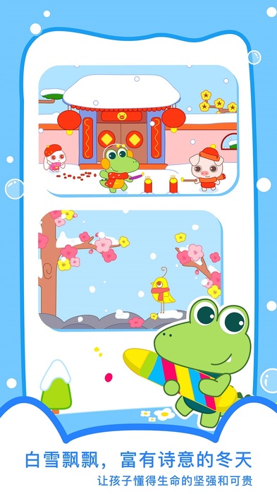 贝贝绘本APP简介贝贝绘本APP是一个专注于儿童教育的app,用贝贝绘本app,可以让孩子们了解春、夏、秋、冬四个季节的故事,软件以动画形式呈现。让孩子无形中记忆,更好地提高学习知识的能力。