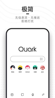 夸克app官方正版是一款费一款坚持极简理念的非常专业好用的浏览器app,夸克app官方正版可以搜索的需求范围十分的广泛,版块功能也是十分的丰富多样,喜欢看的漫画、小说、短视频或者是资讯等多种搜索需求,都可以轻松的满足,让更多有相关需求的小伙伴们迅速的使用,除此之外,夸克app官方正版还为大家配备了强大的隐私保护功能和广告屏蔽功能,轻松保护你的隐私,并且还能让你不在被广告骚扰,为你打造干净、绿色、安全的上网环境,快来试试吧!