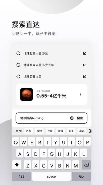 4、搜索直达:前置结果,快如闪电,问一半的问题,已经有答案了。