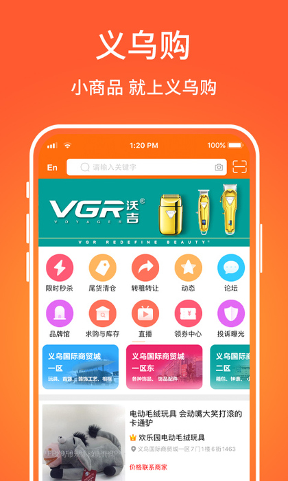 义乌购app是世界领先的B2B小商品批发零售采购平台,也是义乌小商品批发市场的官方应用。义乌购app与所有线下企业合作推广,带来与义乌线下批发市场相同的商品,并加入AR技术,为寻求合作的朋友带来3D全景商店展示,支持整个交易过程监控,真正让所有用户放心购物平台。快来将义乌购app下载到手机上,去尽情享受这款软件带给你的畅快采购体验,并且这里为你准备的小商品是非常丰富的,价格也很实惠,想要购买小商品的小伙伴快来试试吧!