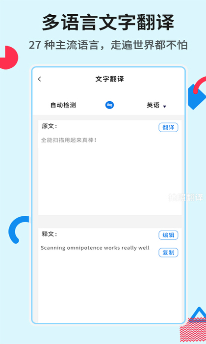 全能扫描是一个功能非常全面的扫描提取软件,可以提取书籍、文件、照片、名片、表格中的文本,只需要扫描手机照片或选择相册照片,可以快速实现文本识别提取、表格识别、照片扫描、卡扫描、照片翻译等功能,生成PDF或word文档一键轻松共享,使用它扫描你想看到的文件信息可以直接显示在手机上,但也支持云存储等功能,可以摆脱大型扫描仪的麻烦,可以有效提高用户的工作效率,是一个罕见的办公工件,免费的手机图片到文本软件。感兴趣的话就快来下载吧!