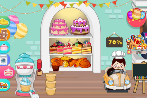 2.游戏中有主卧、厨房、儿童房、游乐场等场景,场景中分散着各种职业NPC,宝宝也可以打扮自己喜欢的角色,把自己的故事放在场景中。