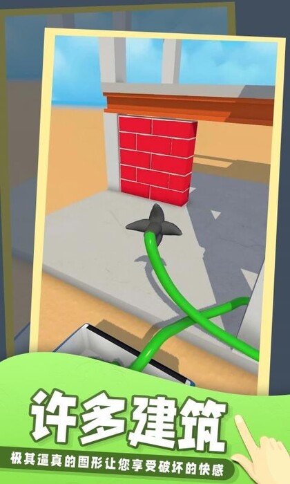 3.玩法简单易懂,只需点击屏幕发射钩爪,暴力拆除命中的建筑即可。
