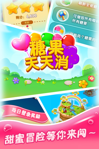 糖果天天消官方免费下载介绍糖果天天消是一款趣味性十足的消除益智闯关游戏,糖果天天消和糖果传奇Candy Crush Saga 一样好玩!!游戏的操作简单,只需要将三个及以上的进行消除就可以获得分数了。这款游戏玩家可以体验到别样的游戏乐趣,多种消除游戏玩法,采用竖屏模式,操作简单,单手也可玩,老少皆宜。糖果天天消更有可爱萌趣的水晶硬糖,388多关,关关精彩,亮瞎双眼的各种特效,简单玩法,轻松上手,.多种道具帮你轻松过关,多种萌萌糖果陪你一起度过美好的游戏时光。这是一款非常适合打发时间的游戏,糖果天天消,精彩不容错过,喜欢的小伙伴快来下载体验吧!