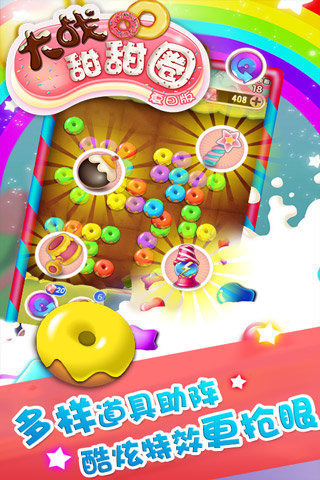 大战甜甜圈(夏日版)玩法1.操作简单,轻轻点击屏幕两个及两个以上的同色圈圈即可消除,从下往上,消除得高分。