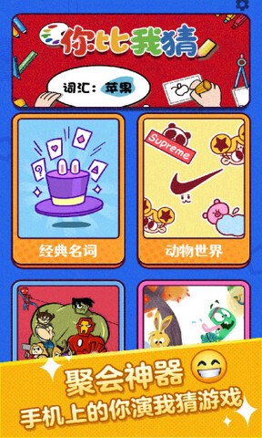 你比划我来猜游戏亮点1.这个游戏可以激活聚会的气氛,让原本尴尬的气氛一下子活跃起来。