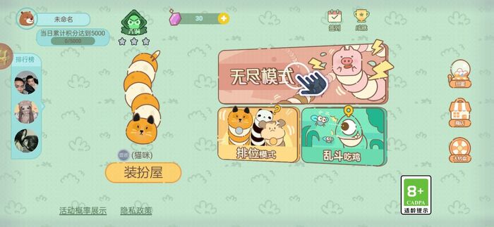 3、游戏中会有许多贪吃蛇角色,你可以自由选择。